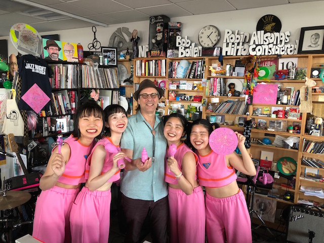 今年の3月から6月にかけてアメリカ、イギリス、ベルギー、オランダ、ドイツ、フランス、スイス、スペイン、そして日本とワールドツアーを回った後、この夏のCHAIはアメリカだけで11公演(フェス出演も含む)のアディショナルツアーを行った。その序盤となるワシントン公演の前には、かつてアデルやマック・ミラーやアンダーソン・パークやタイラー・ザ・クリエイターやチャンス・ザ・ラッパーやカリードの出演回が大きな反響を呼び、最近もリゾやタイ・ダラー・サインといったトップスターが出演したばかりのタイニー・デスク・コンサートの収録をおこなった。タイニー・デスク・コンサートとは、アメリカの公共ラジオ放送NPRの番組で、同局のオフィスの片隅で舞台照明なし大型PA機材なしでライブをおこなうという、アーティストの楽曲力やパフォーマンス力が丸裸にされる、いわば2010年代の「アンプラグド」のような名物プログラム。YouTubeにアップされるそのライブ動画は、多くのバンドやミュージシャンにとってブレイクへの足がかりとなってきた。日本人のアーティストでは昨年コーネリアスが出演しているが、CHAIはその場所に海外進出からたった2年足らずで駆け上がったわけだ。