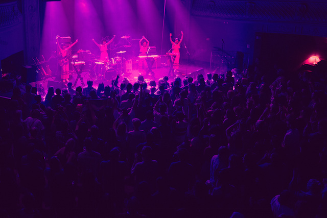 7月19日の深夜、シカゴのウェストサイドにある名門ライブハウス、Empty Bottle(東京でいうと新宿ロフトのようなハコ)でおこなわれたライブは、キャパを超える300人以上のオーディエンスで酸欠寸前の状態だった。深夜ということもあって年齢層は比較的高かったが、男女比はほぼ半々。いずれも筋金入りのインディーファンといった風情のオーディエンスだ。最新アルバムを『PUNK』と確信犯的に名付けてみせたCHAIだが、彼女たちの楽曲はパンクからポップまで、メンバーのラップがフィーチャーされた曲からビートを同期させた曲まで、1曲ごとに目まぐるしくその表情とリズムを変えていく。そのリズムに合わせて、満面の笑みを浮かべて歓声をあげ、踊りまくるオーディエンス。腕を組んで様子をうかがうような、新人バンドのライブにありがちなノリは皆無。みんな最初っからCHAIのことも、曲ごとの盛り上がりどころもよく知っている。その場の親密な空気感に驚かずにはいられなかった。