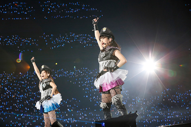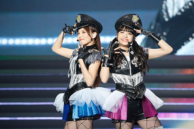 次なるバトンを受け取ったのは、AqoursとSaint Snow。CYaRon!など、Aqoursメンバーのユニット曲はもちろん、Saint Snowによるシャウトと切れ味鋭いラップを交えた歌唱スタイルは特に圧巻だった。なかでも「Believe again」では、アニメ劇中での文脈も相まり、サウンド同様のハードさを追求しながらも、田野アサミ(鹿角聖良役)、佐藤日向(鹿角理亞役)の2名の笑顔が、楽曲の奥にあるだろう“何度でも青春を楽しみたい”という純な想いを届けるようでもあった。